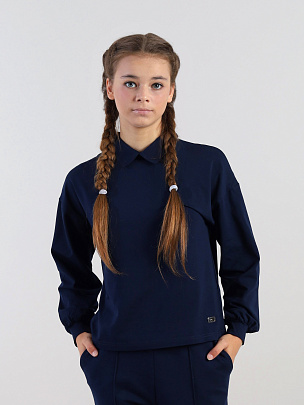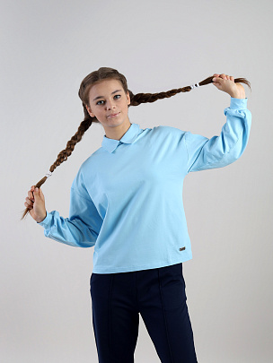 Джемпер из гладкокрашенного полотна с коротким рукавом. Рукава со сборкой по центру. Горловина окантована бейкой из основного полотна. Перед джемпера декорирован бантом из репсовой ленты.