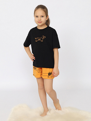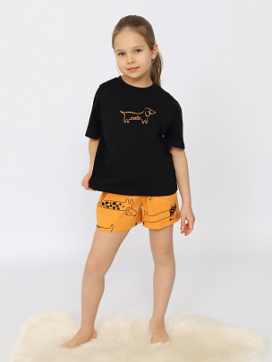 Пижама для девочки (футболка, шорты) черная