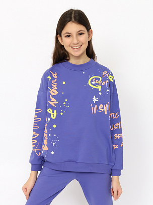 Джемпер для девочки с трендовым принтом "Красота вокруг, будь творческим, вдохновляй", выполнен из мягкого футера на основе хлопка, который прост в уходе, хорошо пропускает воздух и комфортен в носке. Крой оверсайз с заниженной линией плеча не сковывает движения, позволяя ребенку быть активным. Модель дополнена круглым воротником и длинными рукавами. Горловина, манжеты и низ оформлены рельефной резинкой.