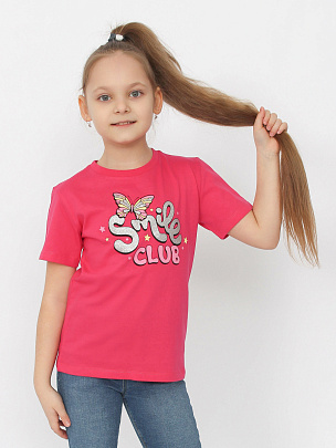 Футболка для девочки с трендовым колледж-принтом, с блестящим эффектом и контрастными бейками по горловине и рукавам. Модель сделана из 100%-хлопкового трикотажа. Материал приятно прилегает к телу, не сковывает движения и позволяет коже дышать.