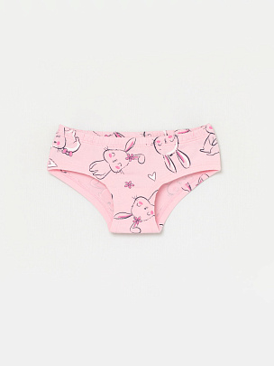 Трусы из гладкокрашенного полотна. Верх трусов и проймы ножек обработаны плоским швом вподгибку. По верху одновременно проложена резинка.