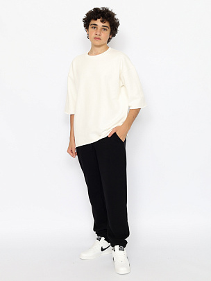 Свободные трикотажные брюки из плотного футера без начеса с карманами. Пояс притачной с резинкой и функциональным шнуром. По низу брюки собраны на резинку.